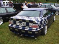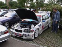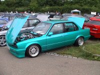 Hier könnt ihr den wahrscheinlich extremsten Umbau des Treffens sehen: Na, was ist es? Richtig es war einmal ein E30. Jetzt hat er eine E36-Front, E36-Heck und ein E36-Cockpit. Nächsten Winter soll noch ein V12 zur Playstation, den 2 Kühlschränken und dem Multimediasystem kommen. Krass, oder?