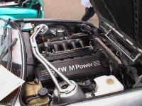 Der geht bestimmt ab wie Harry!!! Ein grauer E30 mit einer Menge Pferden unter der Haube: M3-3.0-Motor aus dem E36. (links)