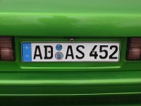 Die BMW M3 (E30) ist wohl eher ein Auto für die Rennstrecke. (links) Giftgrün und oben ohne! Bei diesem E30 ist sogar das Kennzeichen ein Schmankerl: USA? (rechts)