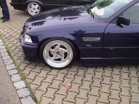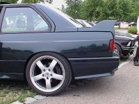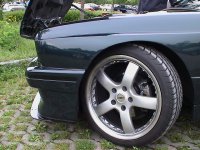 E30 mit Rieger GTS-Verspoilerung, einfach geil!!! (links) Der hat bestimmt einen Haufen Geld, wenn er seinem Baby sogar goldene Schuhe spendiert. (rechts)